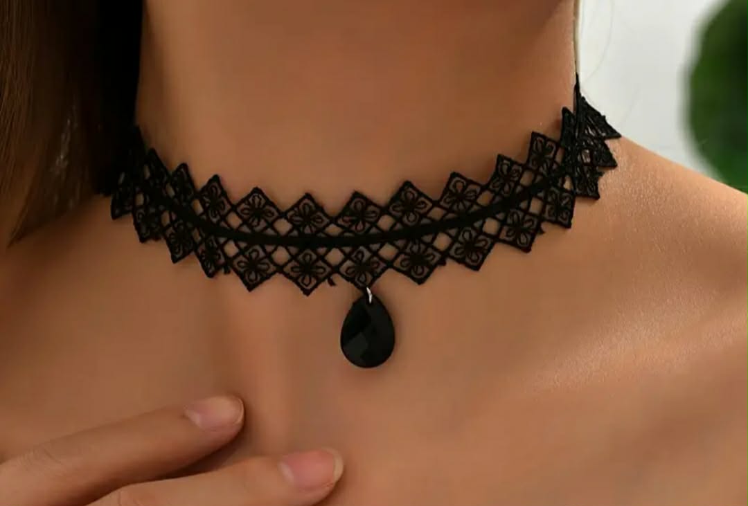 Choker in pizzo con pendente sintetico