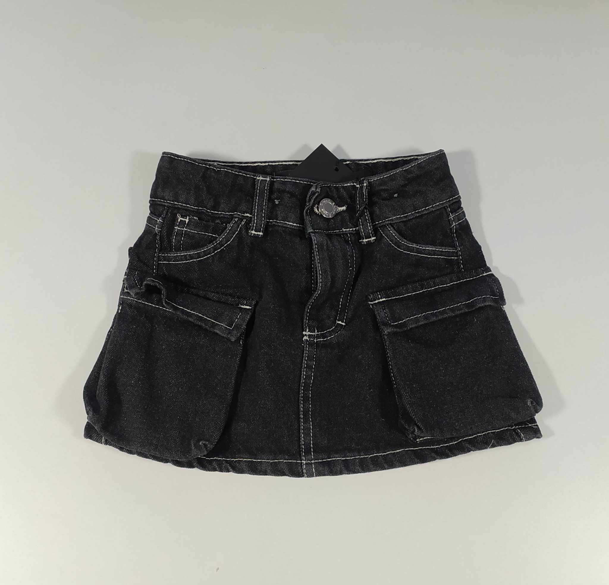 Gonna jeans con tasche laterali e con elastico interno